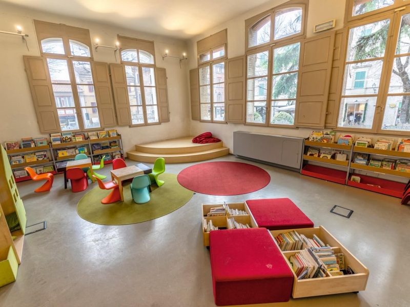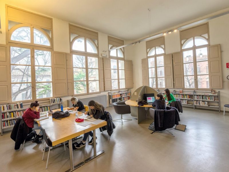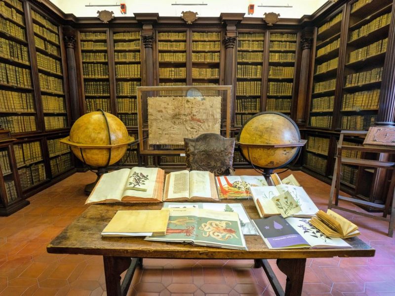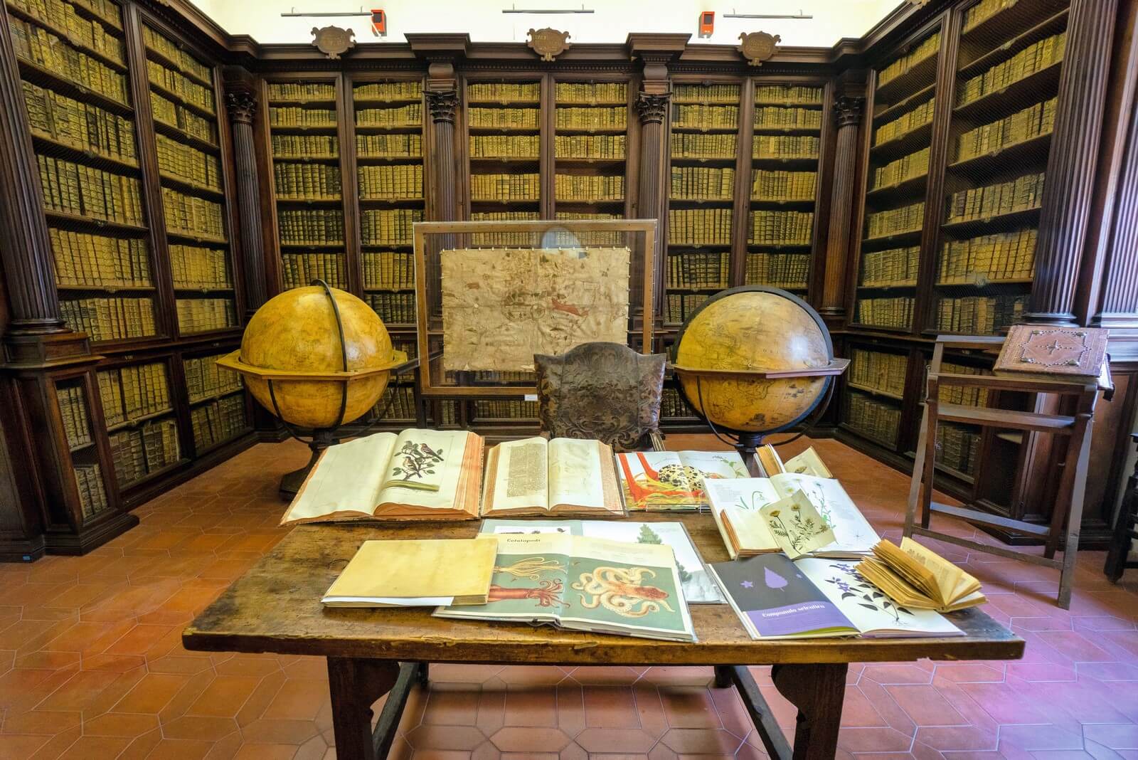 Il sistema bibliotecario di Fano si presenta bifronte, duplice nella sede come nella sua natura, seppur intimamente unito. Da un lato troviamo la Biblioteca Federiciana, fatta allestire dall’abate Domenico Federici quando nel 1681 da Venezia si trasferì a Fano, portando con sé la sua monumentale collezione di 12000 testi. Lo spazio della Biblioteca fu ricavato dall’Oratorio della Chiesa di San Pietro in Valle, adiacente al palazzo e tra le più belle chiese barocche marchigiane. Tra le stanze della Federiciana la Sala dei Globi primeggia per la sua ricchezza. Lo spazio prende il nome dalle due sfere, una terrestre e una celeste, realizzate da Vincenzo Coronelli, storico geografo a cui il Federici le commissionò. Le sfere sono circondate dalle alte scaffalature che ospitano parte della collezione originale federiciana, volumi rilegati alla francese sulle cui coste consunte si leggono titoli che abbracciano ogni campo del sapere, tutt’oggi fruibili per chi sfogliandone le pagine voglia scoprirne i segreti. Alla Federiciana si accompagna la Mediateca Montanari, una biblioteca caratterizzata dall’innovatività degli spazi e dei servizi. Oltre ai più classici servizi bibliotecari, la Memo è un polo di accoglienza e aggregazione cittadina, refrattaria a ogni preconcetto su chi può o dovrebbe fruire della cultura. La Mediateca ha sviluppato, in linea con tutta Fano, una particolare attenzione ai bambini e ai genitori, creando spazi predisposti alla scoperta dei libri fin dai primissimi mesi di vita dell’infante e ancor prima, con la presenza di zone specificatamente attrezzate per le neo-mamme. La Memo rimane legata a una continuità storica fisicamente percepibile nell’Area Archeologica presente al suo interno, dove si possono ammirare i resti dell’Augusteum, edificio di epoca romana preposto al culto dell’imperatore.