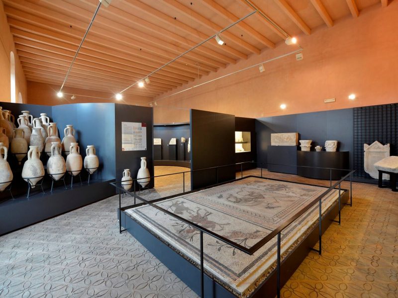 Inoltrandoci nel cuore del territorio comunale scopriamo un luogo dalle origini antichissime, risalenti a ben prima del II secolo a.C., quando in località San Martino del Piano, lungo la via Flaminia, a 2 km dall’attuale Fossombrone fu fondata l’antica Forum Sempronii. Sorge proprio qui l’Area Archeologica di 25 ettari che testimonia la presenza romana. Fondata da un esponente della famiglia dei Sempronii, Forum Sempronii rappresentò per secoli il centro più prestigioso, trafficato e importante della Valle del Metauro. Qui transitavano i carri diretti a Roma, proprio sul lastricato che ancora oggi è possibile calpestare: un lastricato di enormi pietre poligonali che recano le profonde solcature lasciate dalle ruote dei mezzi di trasporto. Un ingresso monumentale, incorniciato da colonne in laterizio da poco restaurate, segna idealmente l’accesso all’antica città romana, al cui interno troviamo mosaici, un portico di colonne in terracotta, resti di edifici pubblici e privati e tracce di uno stabilimento termale. L’emozione invade gli animi, all’idea di calpestare i lastricati originali di quasi duemila anni fa. La città fu abbandonata in seguito alle invasioni barbariche per poi rinascere come l’attuale Fossombrone sulla collina di Sant’Aldebrando. Numerosi sono i reperti venuti alla luce in quest’area, risalenti anche all’età picena e raccolti nel Museo Archeologico “A. Vernarecci”. Qui, nel cuore della città forsempronese, si possono distinguere le testimonianze delle antiche civiltà succedutesi: da oggetti di vita quotidiana come monete, coltelli, chiodi a strumenti chirurgici di bronzo dorati quali pinze e bisturi. Suggestiva la presenza di 150 anfore ritrovate tutte insieme, nello stesso punto, in un pozzo sotto la strada che si impaludava facilmente: tali oggetti sovrapposti, rovesciati, erano adibiti al drenaggio delle acque.