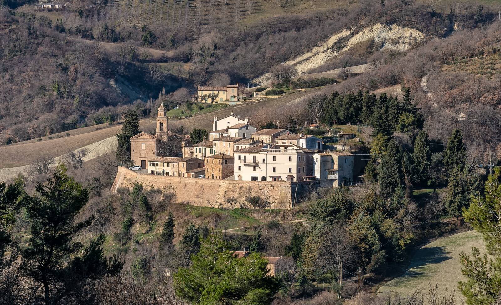 Mentre si vaga per le strade di Colli al Metauro, perdendosi nelle strette vie che si intersecano fitte in un dedalo antico, o si passeggia lungo i sentieri ghiaiosi delle colline, abbagliati dai paesaggi che ci si parano davanti, forse non ce ne rendiamo conto. Occorre fermarsi un attimo e chiudere gli occhi; a quel punto lo scopriremo: il silenzio. Disabituati ad esso, a Colli al Metauro l’aria è cristallizzata in quest’assenza di vibrazione, che fa trarre respiri profondi ed espirare preoccupazioni. Sono i borghi del silenzio che permettono questo incanto, una magica campana di vetro che esclude ogni frenesia. I rumori che interrompono quest’atonia sembrano anch’essi venire da una realtà altra, che partecipa della stessa magia.