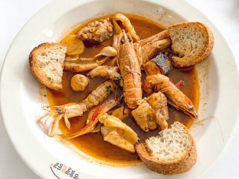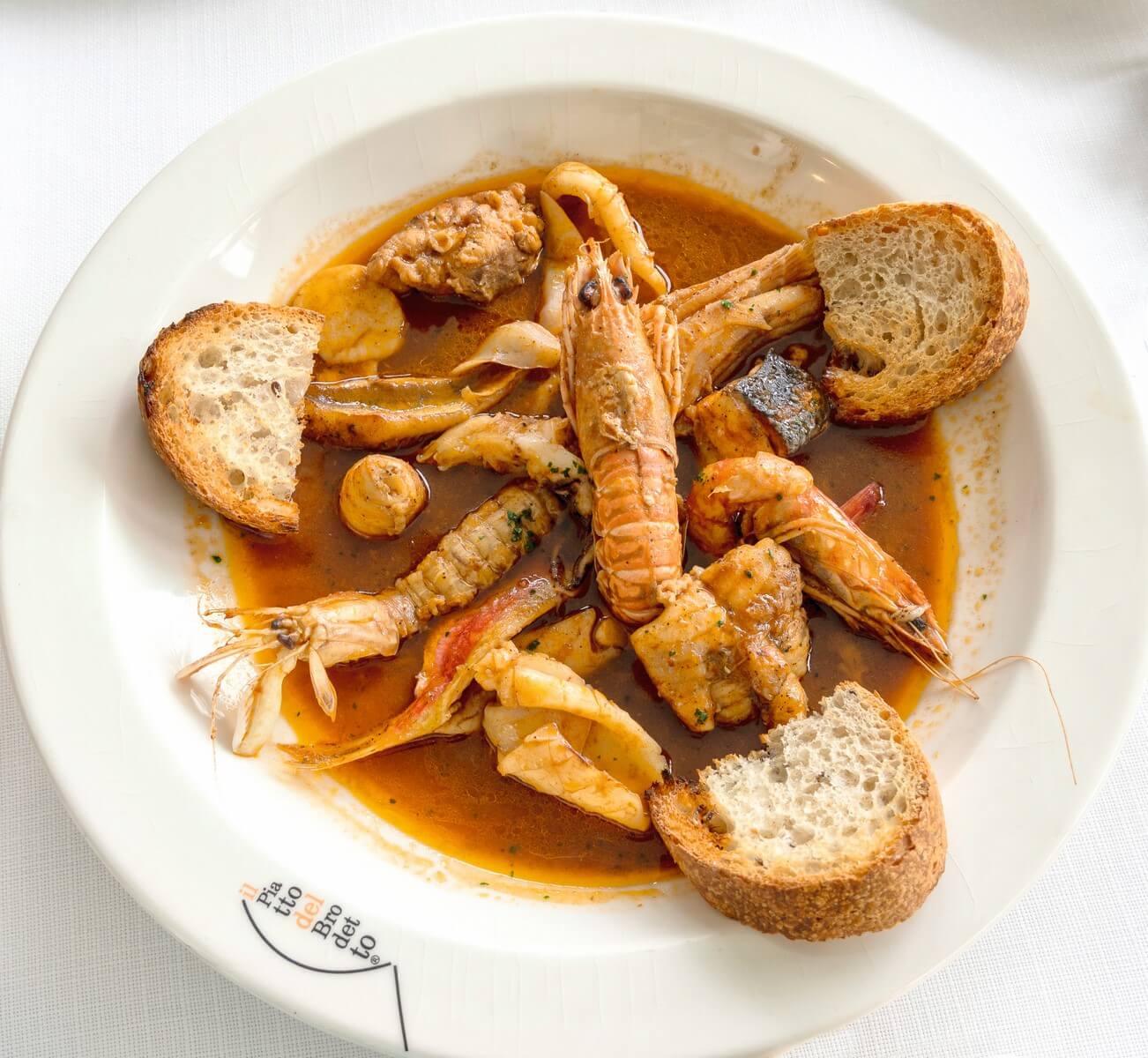 I piatti tipici della cucina fanese sono arrivati nelle tavole delle case e dei ristoranti percorrendo lunghe rotte direttamente dalle barche dei pescatori. Il legame che stringe Fano con la pesca infatti è visibile meglio che in ogni altro luogo proprio nella cucina. Ogni buon marinaio doveva saper essere anche cuoco, in grado di arrangiarsi nei lunghi giorni passati al largo. Il piatto tipico con cui si identifica Fano è proprio quel Brodetto con cui i pescatori si ristoravano dalle fatiche del lavoro. Questa zuppa di pesci “poveri”, che si differenzia dalle altre varietà diffuse nelle Marche per l’uso della conserva e dell’aceto, è col tempo diventato un piatto ricercato, protagonista dell’annuale Festival Internazionale del Brodetto e delle Zuppe di Pesce, un evento finalizzato a valorizzare l’intero comparto della pesca. La tradizione marinara ha fatto sì che nascesse anche il PesceAzzurro, ristorante poi divenuto catena che affonda le sue origini nella convivialità con cui i pescatori condividevano il pesce con le famiglie fanesi. Appena issate le reti i frutti della pesca, dai sardoncini scottadito alle vongole alla “pureta”, dal brodetto alle grigliate di pesce azzurro cotte sul “fugon”, venivano preparati e gustati con ancora il sapore di mare addosso. Nacque così ad opera di una cooperativa di pescatori questo ristorante che ricrea il clima festoso di allora con la possibilità di gustare pesce fresco di alta qualità a prezzi modici. Dopo tanto mangiare, i pescatori abbisognavano di qualcosa con cui concludere il pasto e che soprattutto li rinfrancasse in vista delle lunghe notti insonni passate a sondare i fondali marini. Da qui, e dalla necessità di non sprecare nessun fondo di bottiglia, fu creata quella che oggi è la Moretta, un caffè corretto con una miscela di liquore a base di anice, rum e brandy. Il risultato è invitante già dall’aspetto con i tre strati di liquore, caffè e crema che formano un tricolore che preannuncia un sapore dolce ma forte. Sorseggiandola ad occhi chiusi, si può immaginare l’incresparsi del mare che scuote la chiglia delle navi dove fu creata. A caratterizzare l’offerta enogastronomica della città non ci sono solo i prodotti del mare, ma anche quelli della terra come il Bianchello del Metauro e l’olio DOP Cartoceto, che provengono dalla magnifica vallata del Metauro, a cui Fano è intimamente legata come sua naturale sbocco a mare.