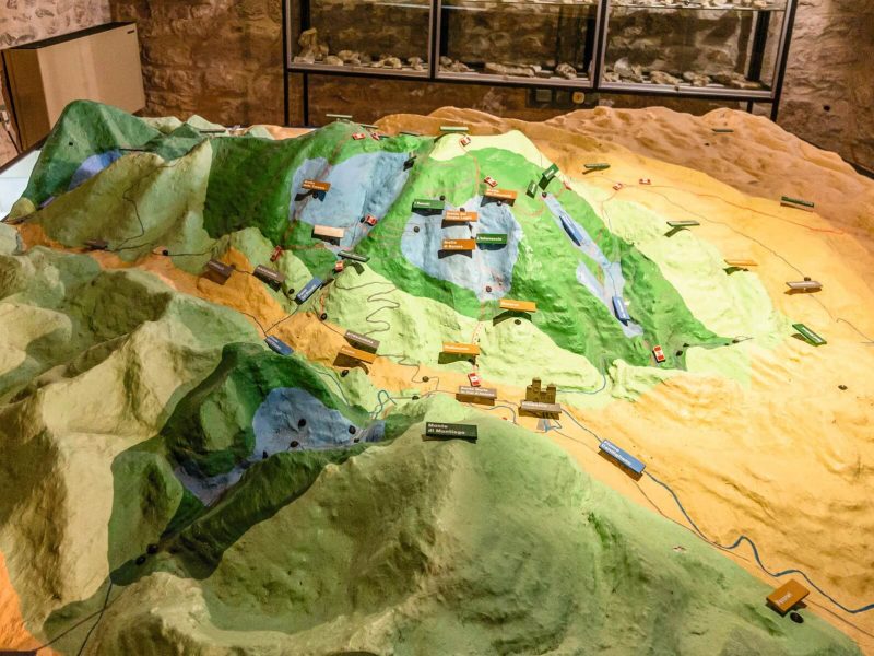Il Castello Brancaleoni è sede oggi del Museo Civico, diviso in diverse sezioni. La parte più antica della struttura ospita la sezione archeologica, ove sono esposte delle magnifiche ceramiche del periodo medievale e rinascimentale. Si tratta di elementi coloratissimi, perlopiù maioliche, rinvenute nelle varie parti del Castello durante i lavori di restauro eseguiti negli anni Ottanta. Sono state prodotte principalmente nel Ducato di Urbino, per la maggior parte a Casteldurante di Urbania. Troviamo poi altri reperti che testimoniano il passaggio e gli insediamenti di popoli preromani e romani: in una zona remota del borgo, infatti, venne rinvenuta, all’interno di una abitazione oggetto di restauro, una fornace di origine romana (furono rinvenuti anche bronzetti con simboli votivi romani sulla vetta del Monte Nerone). Ma il Museo Civico vanta reperti ancor più antichi, da quelli di origine gallica a reperti dell’età del bronzo (II millennio a.C.). Un’altra sezione del Museo è quella geo-paleontologica, che ospita campioni delle rocce presenti sul territorio oltre a reperti giurassici, tutti provenienti dal Monte Nerone. Non solo: lungo i corridoi di questa sezione è possibile osservare uno degli ultimi