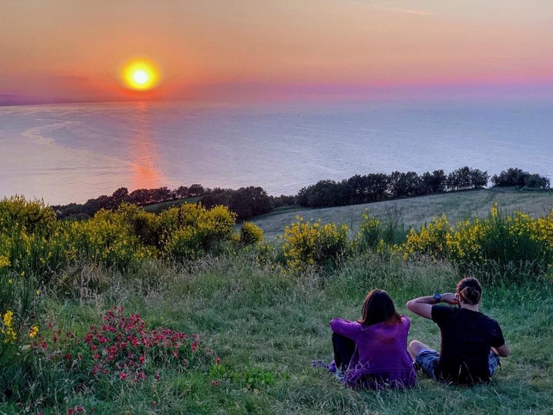 Perfino per i più grandi pittori paesaggisti sarebbe difficile replicare la lucente bellezza che offre Gabicce. I colori della sua natura sono abbacinanti, sembrano aver assorbito nei loro toni i raggi del Sole che irradia ogni angolo col suo calore. La natura qui si distingue per la presenza di due ambienti tanto diversi quanto intimamente uniti nell’offrire un sorprendente spettacolo. Innanzitutto l’acqua dell’Adriatico, trasparente e pulitissima, increspata solo dai bagnanti che nuotano felici. La spiaggia qui si sviluppa con un andamento peculiare, diverso dal resto della costa con cui confina. Essa infatti forma un’insenatura naturale dove oltre la spiaggia finissima come polvere d’oro si trova anche una parte di costa sassosa, come nella splendida Baia di Vallugola, in quella zona che i gabiccesi chiamano “sottomonte”. Il Monte è quello del San Bartolo, il secondo grande protagonista della natura di Gabicce, il cui versante settentrionale scende fino alla città, digradando ora dolcemente ora in modo brusco con le ripide falesie, che offrono uno spettacolo del tutto particolare rispetto alle spiagge circostanti. La roccia che va ad abbracciare il mare, un dittico di eccezionale e rara bellezza che rende il panorama suggestivo e poetico. Il San Bartolo ospita sulla sua cima l’omonimo Parco Naturale, una terrazza da cui poter ammirare l’azzurro del mare circondati da una natura rigogliosa e variegata. Cosa ci può essere di più bello che passeggiare tra le cannucce di Plinio piegate leggermente dal vento, sostare un momento all’ombra di un leccio o di un pino, fino ad arrivare all’estremità del Monte che si affaccia sullo sterminato spettacolo del mare? Il Parco del San Bartolo offre una natura ricca, dove il verde è punteggiato dal giallo acceso delle ginestre in fiore, presenti in abbondanza in questa zona. Due meraviglie naturali che si incontrano e si uniscono per regalare emozioni.