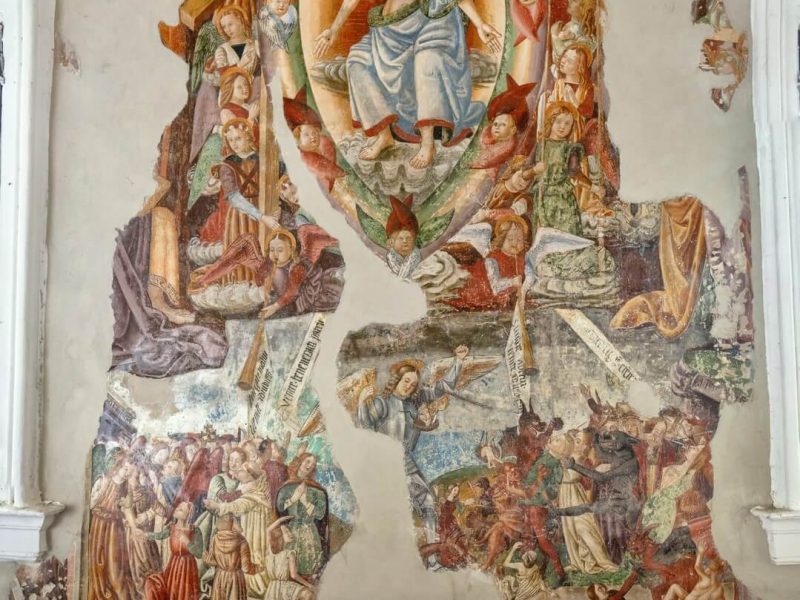 Gli antichi borghi, cuore storico di Colli al Metauro, sono caratterizzati da una fiorente tradizione religiosa, che è germinata nei secoli in un grande numero di chiese, ricche di storia e di opere d’arte inaspettate. Basti pensare che la sola Saltara si vantava del nome di “città delle cento chiese”, ma anche gli altri paesi non erano da meno. Proprio a Saltara sorge una delle strutture più affascinanti: la Chiesa del Gonfalone, fiore all’occhiello della città, riaperta nel 2014 dopo un attento lavoro di restauro che ha riportato alla luce l’affresco del Giudizio Universale, posto sopra l’ingresso, che raffigura con forte gusto evocativo la pesa delle anime che alla fine dei tempi decreterà la salvezza o la dannazione.