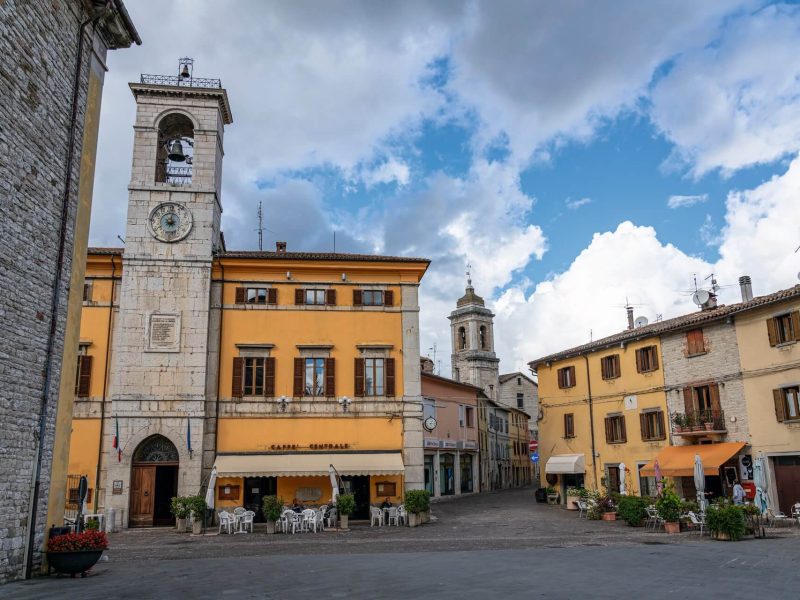 Proprio per ringraziare degli effetti benefici ottenuti da questo medicamento, una nobildonna romana donò la Madonna del Cardellino alla città, opera preziosissima della bottega del Pinturicchio (o del Perugino), fiore all’occhiello del suo patrimonio artistico, conservata nella Collegiata di S. Giovanni Battista, chiesa barocca ricchissima al suo interno. Ma anche altre chiese meritano la nostra attenzione, come la centralissima Chiesa di S. Nicolò e quella di S. Agostino, dal bel portale romanico. C’è spazio anche per il verde al centro di Cantiano: il Parco della Rimembranza è un’oasi, al cui ingresso possiamo ammirare il Monumento ai Caduti. Il parco è dedicato alle vittime cantianesi della Prima Guerra Mondiale, alla memoria di ognuna delle quali è stato piantato, per eternarne il ricordo, un fiero ippocastano.