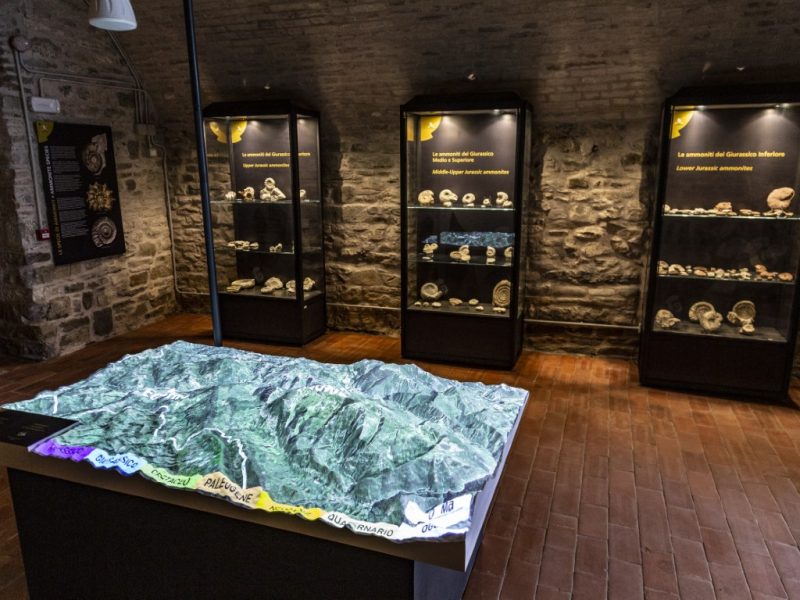 Dove ora ci sono alte vette, milioni di anni fa c’era un mare tropicale, in cui le ammoniti e tantissime altre creature sguazzavano libere. Il Museo continua con reperti che ci guidano alla scoperta dell’evoluzione ambientale della zona del Nerone, con ossa e teschi di predatori come l’orso delle caverne, a fianco di ritrovamenti provenienti da tutto il mondo e delle curiose pietre septarie, rocce che illuminate dai raggi UV diventano fluorescenti.