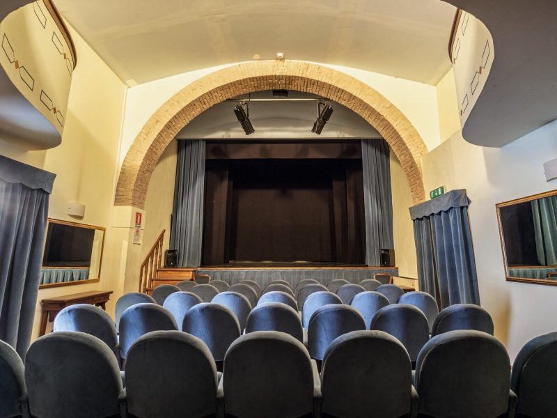 Quando entriamo a Palazzo Ubaldini, potremmo pensare di trovarci in un simbolo di storia locale che, per quanto splendido, appartiene ormai al passato. Niente di più errato. Il Palazzo è vivo e dinamico. Al piano terra è custodito un gioiello unico, il Teatro G. Perugini. Compreso tra i Teatri Storici delle Marche, fu fondato nel 1876 in concomitanza con la nascita della Filodrammatica, attiva ancora oggi e promotrice di spettacoli dialettali che tengono viva la tradizione locale. Il Teatro detiene un record molto particolare: è il più piccolo teatro delle Marche con i suoi 42 posti a sedere. Scendendo negli antichi sotterranei, sotto le ampie volte a botte è stato allestito il Museo dei Fossili e Minerali del Monte Nerone.