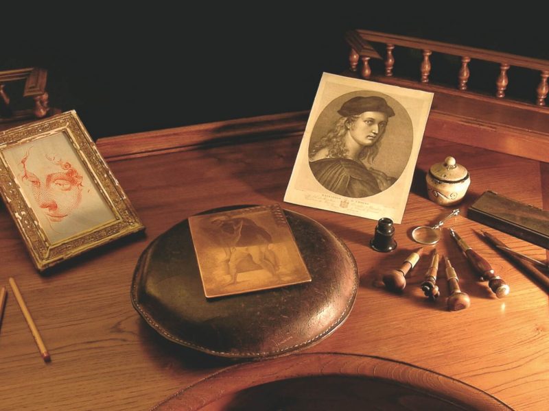 Guardare, studiare e toccare le opere dei grandi maestri ora si può. Un immenso patrimonio artistico si apre ad Urbino alla condivisione e diventa esperienziale per lo studente di grafica delle accademie ma anche più in generale per tutti coloro che sono appassionati d’arte. In via Veterani, di fronte al Palazzo Ducale, accolti da Marta Bruscaglia si potrà ammirare l’opera completa di Renato Bruscaglia, uno dei protagonisti della grafica internazionale del secondo Novecento: le sue acqueforti con le matrici, le edizioni d’arte, i disegni e gli acquerelli, oltre ad opere dei suoi amici artisti e un nutrito numero di libri d’arte a tiratura limitata dell’Istituto d’Arte per la Decorazione e Illustrazione del Libro dal 1939 alla metà degli anni ’70. In via Saffi guidati da Giuliano Santini sarà messo a disposizione l’archivio del centro internazionale KAUS composto da centinaia di grafiche realizzate da maestri provenienti da ogni parte del mondo e che hanno operato a Urbino, insieme alla sua collezione di stampe antiche e contemporanee e le opere poetiche in ferro battuto di Fuffi (Fulvio Santini). Spostandosi poi in piazzetta S. Andrea ed entrando nel Palazzo De Praetis il visitatore, incontrando Bruno Cerboni Bajardi, potrà immergersi nello straordinario mondo della microincisione, la raffinata tecnica del bulino usata per incidere le matrici delle banconote e dei francobolli. Attualmente sede della Accademia Internazionale dell’Intaglio antico a Bulino, è uno dei pochi siti al mondo dove si insegna la scienza dell’arte del bulino applicata alla carta moneta. Il Maestro Bajardi potrà esporvi il proprio lavoro di microincisore, l’archivio che raccoglie alcuni lavori dei Maestri della cartamoneta, le sue grafiche i suoi disegni, i suoi dipinti. Se l’arte colma il tatto e la vista, l’esperienza continua anche con il gusto. Da non perdere infatti la “crescia sfogliata” di Urbino, un cibo nobile, ricco, nato sotto il segno del Rinascimento proprio tra il XV e il XVI secolo. Farina, uova e strutto di altissima qualità ben amalgamati, lavorati e cotti a mano fanno della “crescia sfogliata” uno dei prodotti tipici maggiormente amati. E che dire della Casciotta d’Urbino DOP? Quel formaggio che già dal nome risulta autentico, originale, unico, con quella “c” baciata dalla “s”. Il suo sapore suadente, la sua indescrivibile delicatezza, il gusto e l’aroma del latte misto vaccino e ovino, richiamano i pascoli delle campagne di Urbino. Un cibo fonte di ispirazione, di energia, di creatività. Si narra che di tale formaggio ne fosse ghiotto Michelangelo Buonarroti.