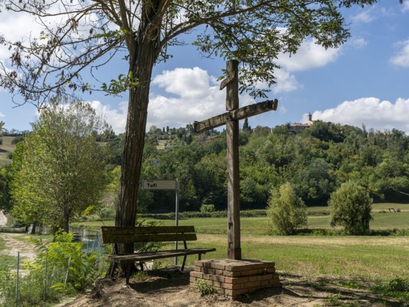 Il territorio di San Costanzo è celebre anche per i percorsi storico-naturalistici come “Su e giù per le valli”, il percorso escursionistico Flaminia-Cesano e la “Valle dei tufi”, che attraversano la valle del Metauro e del Cesano, offrendo un’immersione nella bellezza naturale e nella storia agricola locale. Lungo il percorso, all’ombra di secolari querce, si consumano merende e prelibatezze tradizionali che i maestri polentari offrono agli ospiti. Nei percorsi naturalistici, oltre all’osservazione della flora e della fauna, è possibile ammirare una ricca avifauna, tra cui spicca il gruccione. Questo splendido uccello dai colori vivaci – giallo, verde, blu e marrone – è una delle specie simbolo della Valle del Tufo. Nidifica lungo le pareti tufacee, scavando gallerie nei terreni sabbiosi e creando colonie animate durante la stagione riproduttiva. Un elemento distintivo che attira sicuramente l’attenzione di birdwatcher e amanti della natura. I visitatori possono quindi godere non solo dei panorami mozzafiato, che spaziano dalla montagna al mare, ma anche dell’opportunità di osservare da vicino una delle specie più affascinanti dell’avifauna locale, rendendo ogni visita un’esperienza unica tra storia, cultura e natura.