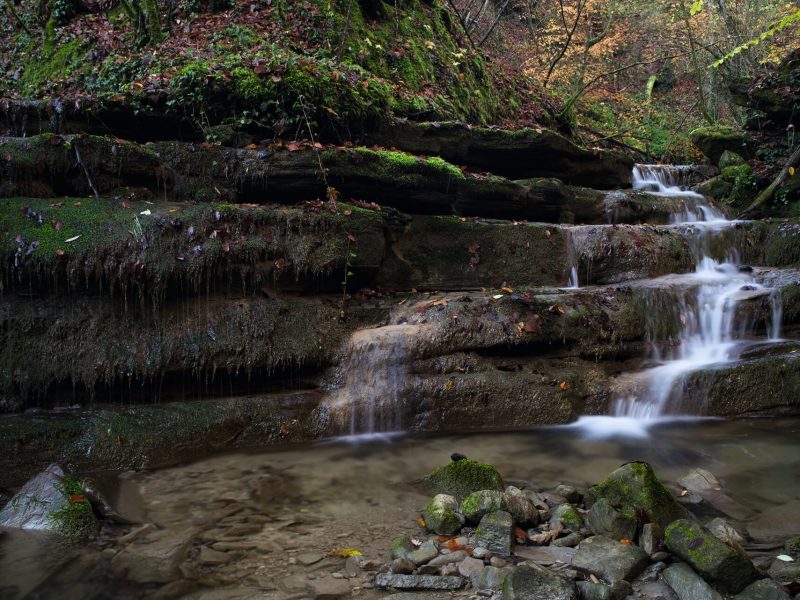 Only apparently dark and severe, the range lets one discover all of its wonder. Many paths were designed along its slopes, suitable both for a peaceful excursion and a more engaging trekking. They lead us up to the most secret recesses in the mountain. The naked rock is only apparently uniform: it makes up a real “geological atlas”, because of the lot of information which tell careful observers about the long story of the rise and growth of the Apennine. The green heart of the area is the Natural Reservation of Bosco di Tecchie, a protected area about 195 hectares wide which lushly expands along the Serre di Burano, a long mountain range marking the border with Umbria. Only reachable by means of narrow and winding roads in the middle of tall trees, this woody area was never touched by human hands and keeps its whole purity. One’s lungs breathe perfectly clean air as one walks in the middle of century-old beech trees whose wide crowns, into this crowd of woody and sappy giants, hide the sky together with the leaves of imposing oaks. Each season paints the leaves of these and of many other different trees with new colours, in a cycle eternally renewing itself and evoking the evolution of a painter’s creative periods. The wet ground, at times as soft as a carpet, hides a rich variety of mushrooms and is crossed by a heterogeneous and bizarre fauna. One can hear the sharp croaking of red frogs, the quick escape of a fire salamander and the heavy steps of an ungulate. Both into the Reservation and anywhere else on the Catria, water is a constant presence whose freshness softens the rocks and perfumes the air. Rivers, creeks and water rivulets feed the plants; since the dawn of its creation they are a priceless wealth to Cantiano and its untouched echosystem.