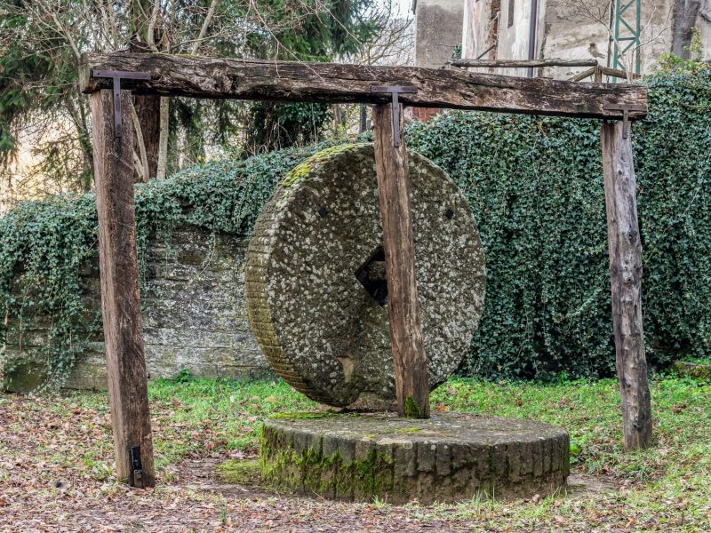 Church imposed upon those of them who built theirs connected to the house of a Christian. The patrimony is also enriched by the churches spread into the heart of Apecchio. Near Palazzo Ubaldini stands out the St. Crucifix’ sanctuary, previously known as St. Martin’s parish church, that according to some theories was built on the location of a temple dedicated to the god Mars. Inside it there is a work most loved by people of Apecchio: the wooden Crucifix which, according to the tradition, protected them from the disastrous earthquake of 1781. A mention deserve also the precious works of art in Madonna of Life’s, the mysterious templar symbols on the fresco shreds in St. Lucy’s and the charming St. Cathrine of Alexandria’s, protected by the shadows of a long boulevard. In the city outskirts, stands out an enormous millstone once used to grind dyer’s woad, a grass used to produce indigo, a colour precious for dying tissues and creating paintings that for centuries was a source of wealth to Apecchio.