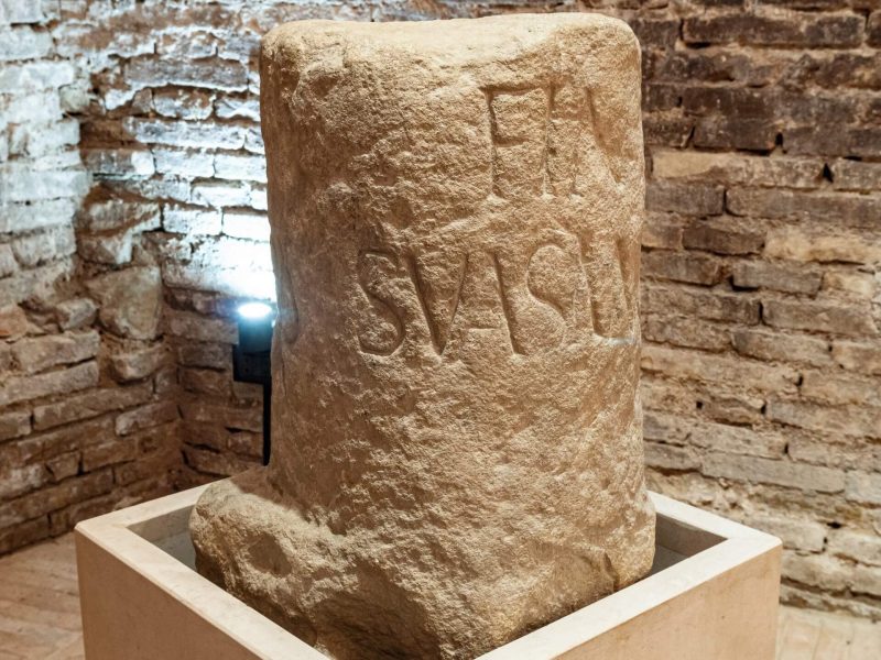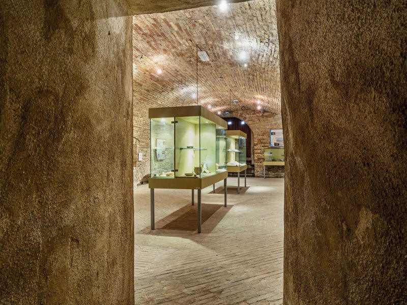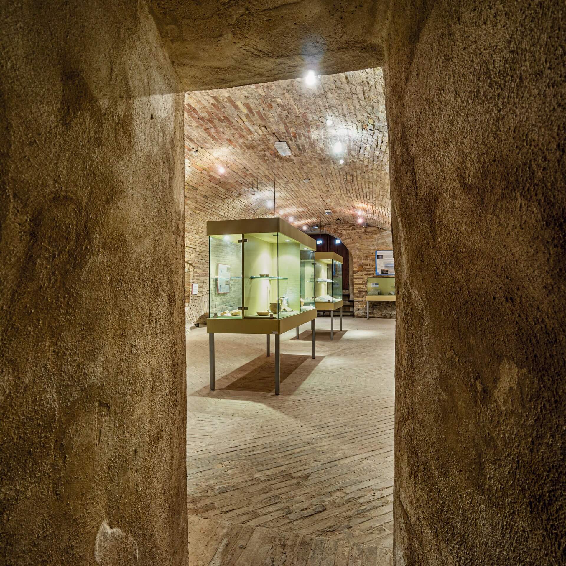 One walks a few steps down into the cellars of Palazzo della Rovere, and travels millions of years back in time. The basement of the Palace hosts the Archaeological Museum of the Territory, aimed at telling the geographic, historical and cultural history of the Cesano Valley by means of five halls set up on two floors and equipped with richly illustrated explanatory panels. The tour begins from the most remote prehistory, when ammonites, most ancient molluscs, lived on sea beds which in time were to rise and become solid ground; a ground where would later walk such unexpected animals as rhinoceroses and buffalos, and an enormous horned buffalo skull can be admired in the museum. Further ahead, in the cases appear the unmistakable signs of the presence of man, whose evolution is shown by findings that show the human advancement in dealing with materials: after flint objects there are copper, then bronze and iron ones: brooches, bracelets, fragments of weapons and many amphorae. Down on the lower ground one meets a crucial stage in the history of San Lorenzo in Campo: the arrival of the Romans which occurred in the III century b.C. Amid the many findings, especially charming are many votive little female statues, probably connected to domestic cults. Very interesting is also the boundary stone which marked the border between the territories of Pesaro and of the great Roman city of Suasa, close to San Lorenzo. The last hall brings one back to the origins of the museum, as it holds the collection created by Gello Giorgi, a doctor and a monk who created its early nucleus. During his travels, Giorgi collected in fact a lot of objects, very heterogeneous both in age and origin. One is moved especially by the findings the monk brought back from Sierra Leone, where he was a missionary for a long time: most original handicrafts which enable visitors to understand the African ethnology.