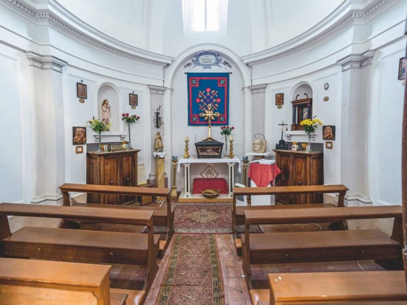 The building of St. Trinity’s Oratory in Sassocorvaro does not stand out of the others on the narrow road where it rises and one could not notice it at all. Its inside too does not show peculiarities capable of calling one’s attention. And yet, a surprise awaits its visitors. The Oratory, in fact, is better known as St. Valentine’s because it keeps a relic of the saint patron of lovers.