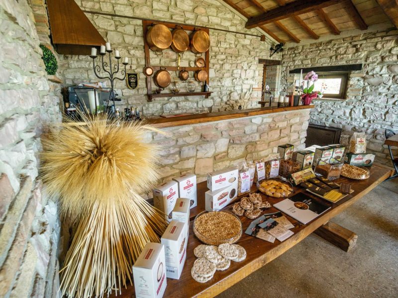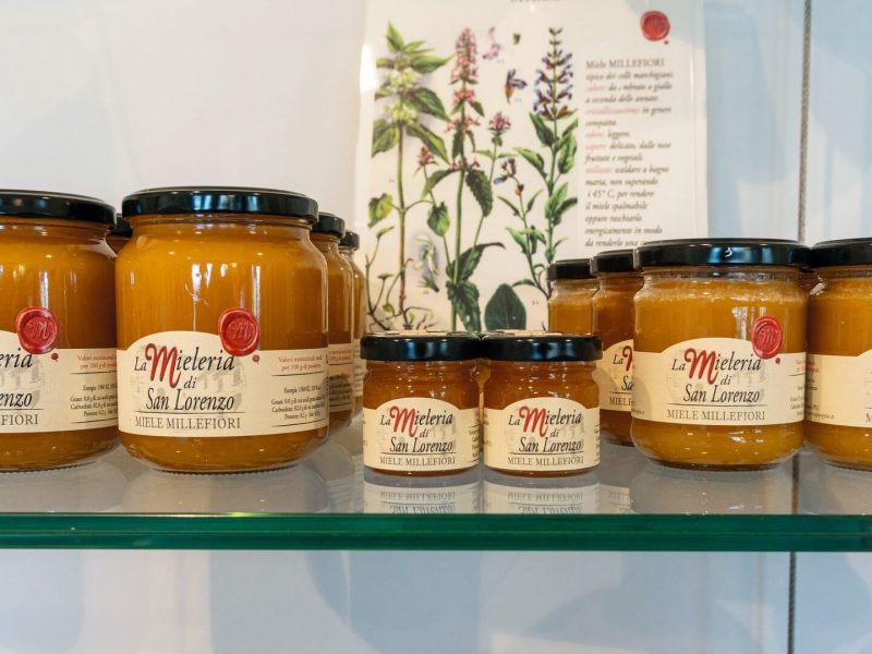 The territory of San Lorenzo in Campo, moulded by the fields farmed by men, is a rich and fertile land that offers tasty gifts for the table. Tradition and innovation meet in the production if its wine and food excellencies. Spelt is one of its most appreciated products: this cereal’s history is as ancient as mankind’s: originally cultivated in Mesopotamia and Egypt, it became a protagonist of the Roman culture, being used to feed and pay the legions and also as an offering in religious rites. Nowadays spelt acquired fame again due to its nutritious properties and to rigorously biological cultivation methods, based on quality standards that here in San Lorenzo in Campo reach to the top. With the spikes that gild its hills, a rich variety of products is made, all sharing beneficial effects and savoury tastes, such as pearled and integral spelt, puffed and honey spelt, as well as flour, pasta, biscuits, crackers and chocolate tablets. It is also the basic ingredient of “castagnolo” (a sweet round fritter usually mad for carnival), a typical regional sweet and the protagonist of the “Festival of Castagnolo”. Another golden local product is honey. Sweet, thick, bright and rich with nutritive qualities, honey is a typical landmark: “millefiori” (thousand flowers) honey, most of all, is the summary of all can be offered by the flowers that cover the meadows and the fields of a land. No “millefiori” honey is like any other, and one can be sure that the one from San Lorenzo in Campo fears no comparison, as is witnessed by many prizes awarded to “Mieleria di San Lorenzo” (St. Laurent’s honey factory), the main local honey producer. This firm offers a rich variety of honeys, each bearing peculiar characteristics. Further to “Millefiori”, one can choose acacia honey (many acacia trees brighten the fields around San Lorenzo), tilia honey (very fresh and perfect for infusions), coriander honey (bearing a citrus taste and a spicy flavour), rapeseed honey (perfect when coupled with cheese) and chestnut tree honey.